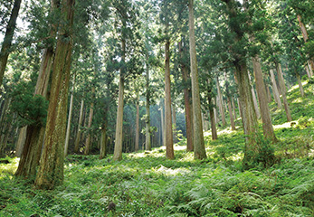 Forests occupy about 77% of Nara Prefecture’s total area. Yoshino, located in the southern part the prefecture, is blessed with very favorable climatic conditions for the growth of cedar and cypress trees, namely an annual rainfall of 2000 mm or more, an average temperature of about 14℃, relatively few typhoons and a winter snow accumulation of 30 cm or less.